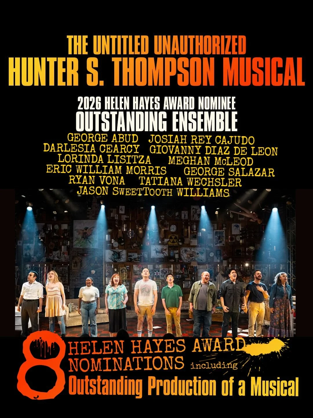 HUNTER s. THOMPSON Musical nominated for 8 Helen Hayes awards! Including Outstanding Production and EnsemblE